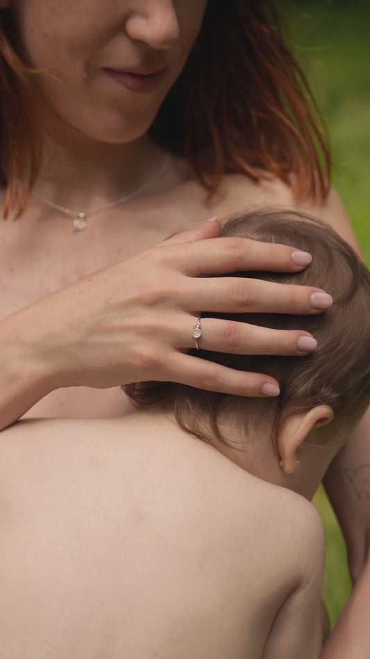 Anillo círculos unidos de leche materna y piedra de nacimiento