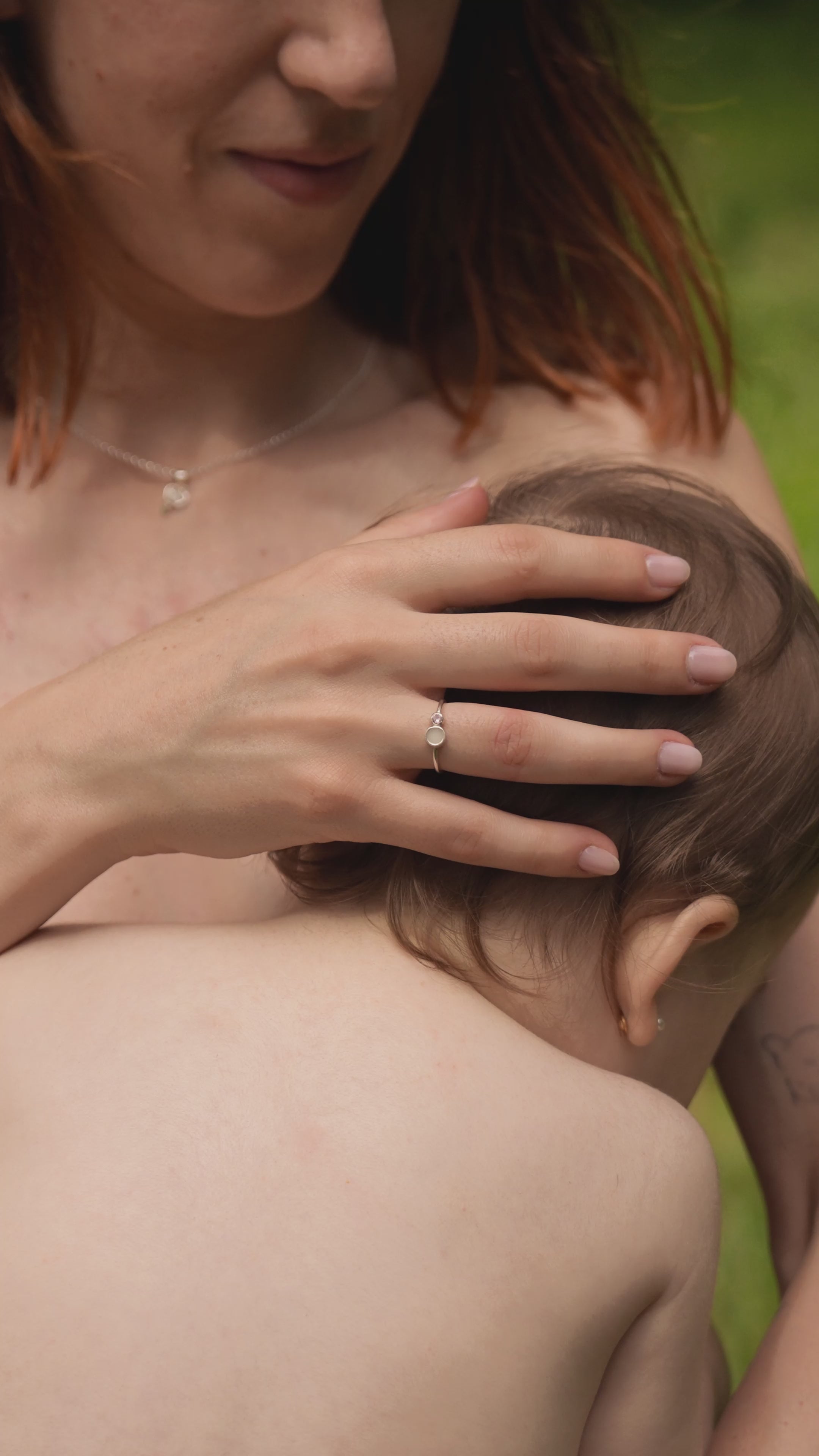 Anillo de círculos unidos de leche materna y piedra de nacimiento simbolizan la unidad y el amor eterno. Sus formas cerradas sobre sí mismas representan el vínculo inquebrantable entre madre e hijo, mientras que la piedra de nacimiento añade un toque único y personal a cada diseño.