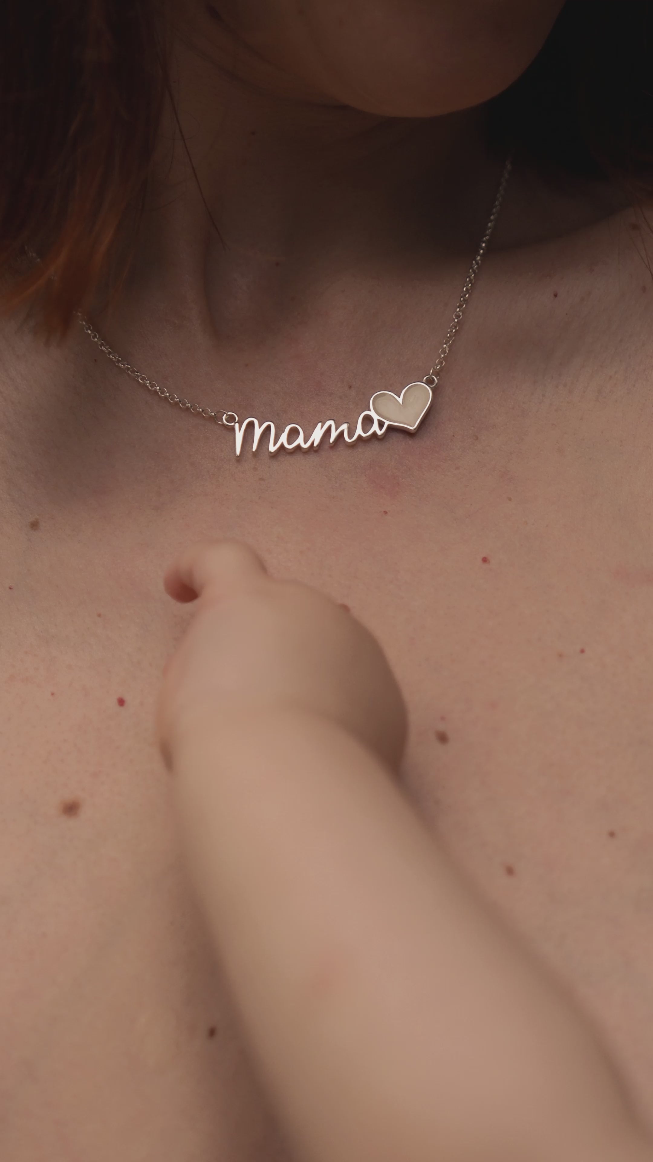 Colgante letra inglesa y corazón estilizado de leche materna, puedes personalizarlo con la palabra o nombre que prefieras.